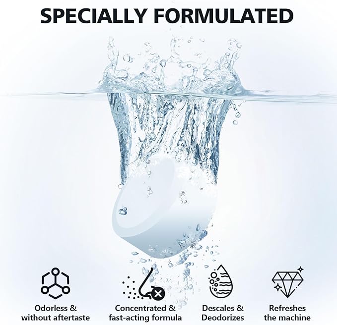 - Enjoy Better Tasting Coffee: The espresso machine cleaning tablet maximum efficiency removing hard water buildup, calcium, limescale, grime and oil in coffee machine, deeply cleans all internal parts and deodorizes.Taste your coffee, not the nasty buildups in your machine.