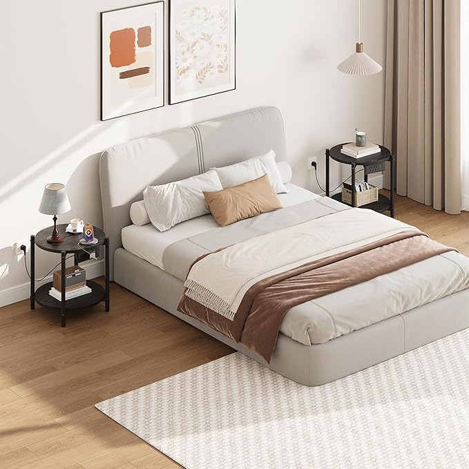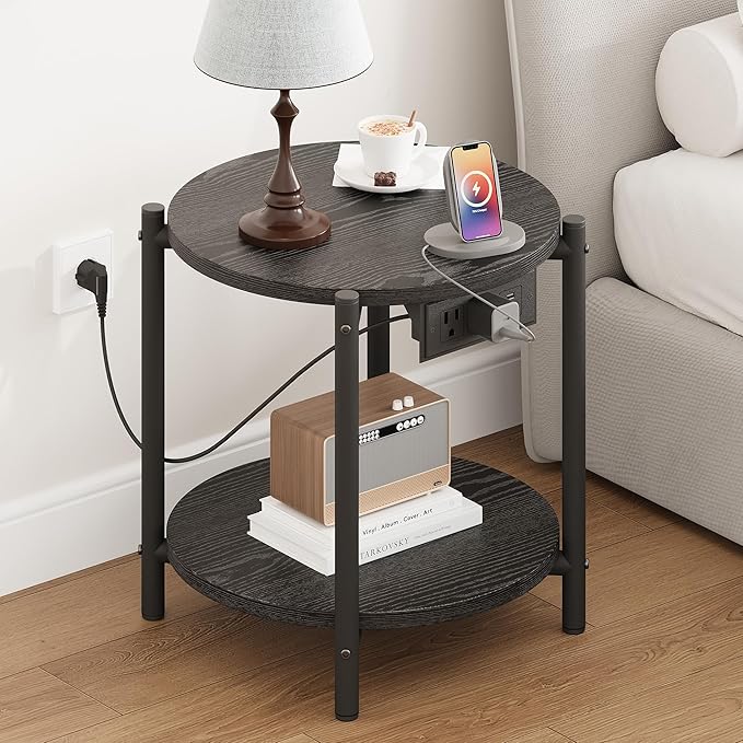 - 【End Tables with Charging Area】No more tangled wires! These round end tables has 2 AC power outlets, 1 USB port, and 1 Type-C port on the side, so you don't have to worry about water damaging the charging station