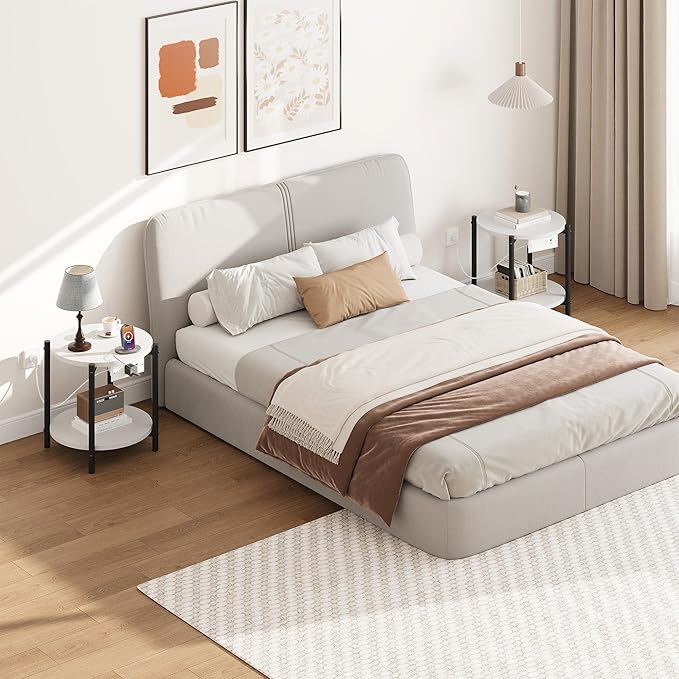 - 【End Tables with Charging Area】No more tangled wires! These round end tables has 2 AC power outlets, 1 USB port, and 1 Type-C port on the side, so you don't have to worry about water damaging the charging station