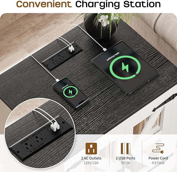 Farmhouse Side Table with Storage Cabinet, End Table with Adjustable Shelf, Large Night Stand, Wood Nightstand with Charging Station, 24" End Tables Living Room, Rustic Bed Side Tables Bedroom
