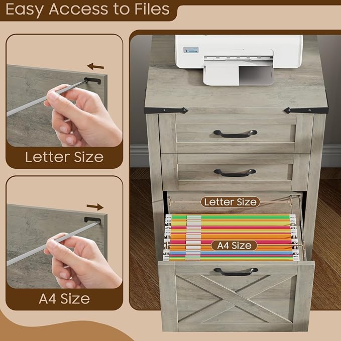 - 【Modern Farmhouse Design】 Featuring a rustic texture, this file cabinet brings a charming farmhouse look with a unique X pattern on the drawer faces paired with metal angle iron. It blends modern functionality with farmhouse style to suit a variety of interior designs and add charm to your home office.