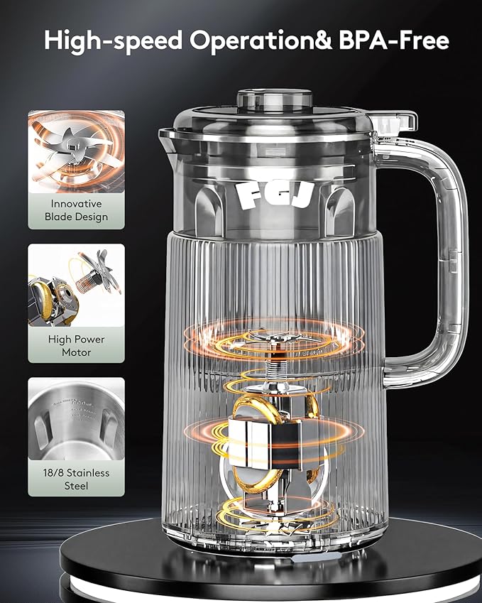 - 【BPA-Free & Safe Materials】Your health comes first! Made with food-grade, BPA-free materials, this appliance ensures every sip of your homemade almond milk, oat milk, or soy milk is safe and toxin-free.