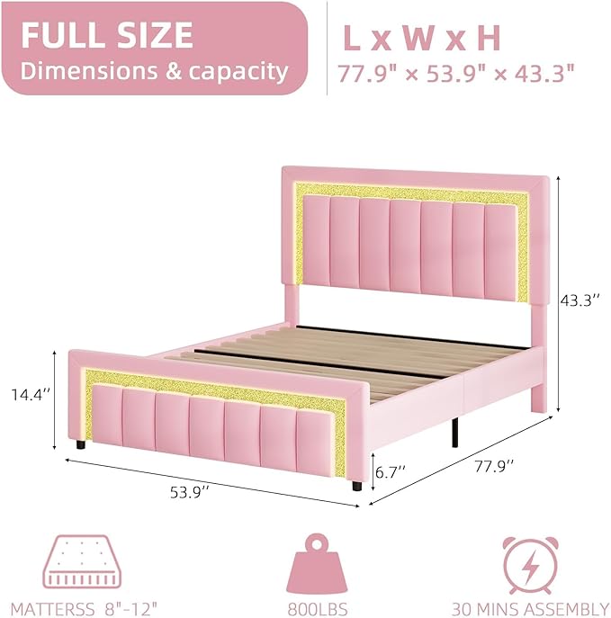 - Easy Assembly: This pink bed frames full with headboard comes with detailed installation instructions and components. Just follow the steps in the manual and you can quickly complete the assembly without the need for any additional tools