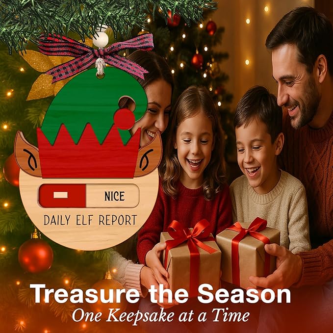 - COMPLETE ORNAMENT SET – Each elf ornament set comes with a 2 layered wood elf ornament, festive ribbon, and a decorative box ready to present as a gift. Enjoy elf ornaments that include touches of elf arrival, elf Christmas ornaments motifs, and the excitement of a daily elf report ornament. The thoughtful packaging ensures it’s perfect for gifting or adding to your holiday elf decor.