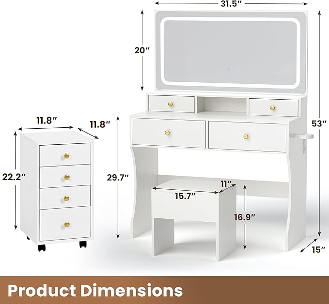 - Lockable Rolling Cabinet for Secure Storage: Includes a lockable rolling cabinet for safe storage of valuables and easy mobility, adding convenience to your makeup desk setup