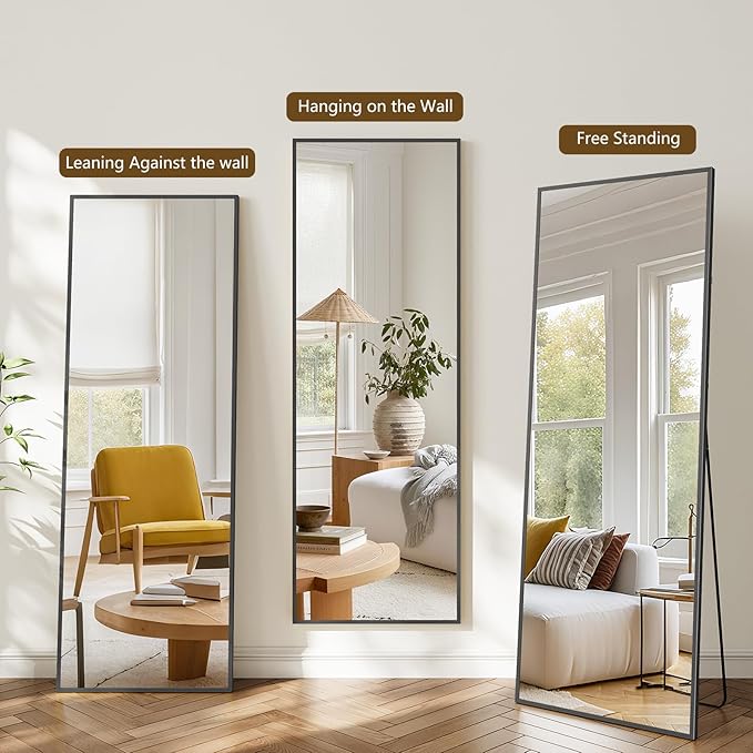 - VERSATILE & MULTI-SCENARIO: This full body mirror can be used in a variety of ways, you can stand it on the floor, lean it against the wall, or hang it on the wall without taking up more space. Large mirror full length is equipped with a screw kit to fix the mirror firmly to avoid falling off as soon as you touch it