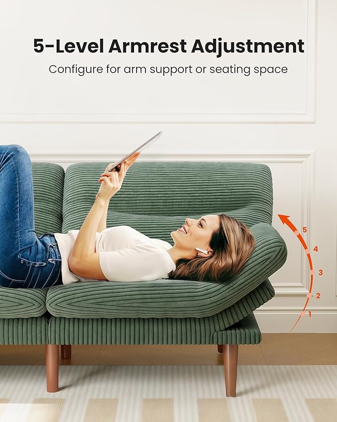 - Sturdy and Durable Design: Crafted with a strong wood frame and legs, this futon sofa couch supports up to 500 lbs, ensuring a durable futon that lasts for years. The durable build and corduroy fabric make it a reliable choice for daily seating and sleeping