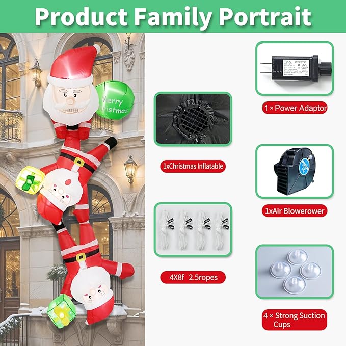 - Quick Self-Inflation Design: Featuring a built-in powerful fan, our decorations inflate automatically in seconds. Simply plug them in and enjoy the best inflatable Christmas decorations ever.