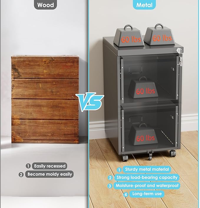 - 【Ease of Cleaning】Due to their metal surface,2 Drawer File Cabinet with Wheels is easy to clean and maintain. They only require a damp cloth or cleaning agent to wipe them down.