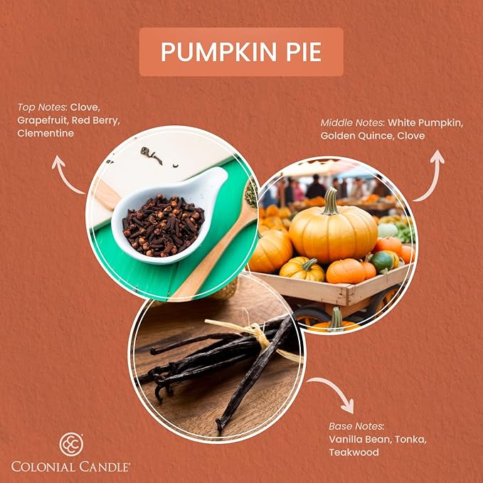 - PUMPKIN PIE: Rich pumpkin, sweet vanilla and spicy clove give this candle the deep aromas of fall to add some coziness to your home.