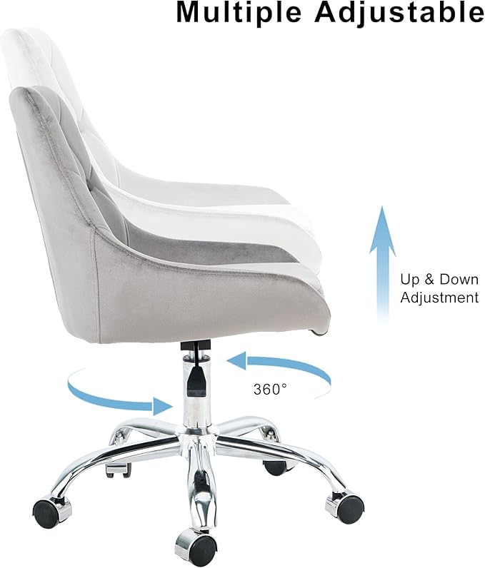Furnimart 360° Swivel Rolling Desk Chair, Height Adjustable Vanity Chair with Silver Legs, Cute Task Chair with Wheels for Dorm Bedroom Studying Small Places (Velvet Gray)