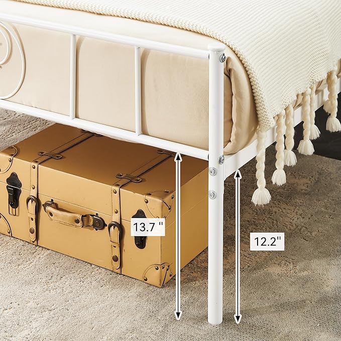 - š¦ UNDERBED STORAGE OPTIMIZATION ā With 12.2 inches of clearance, this twin bed frame high off ground creates ample space for storage bins, suitcases, or seasonal items. The 11.2-inch ground clearance allows easy cleaning access for robot vacuums beneath the platform bed frames.