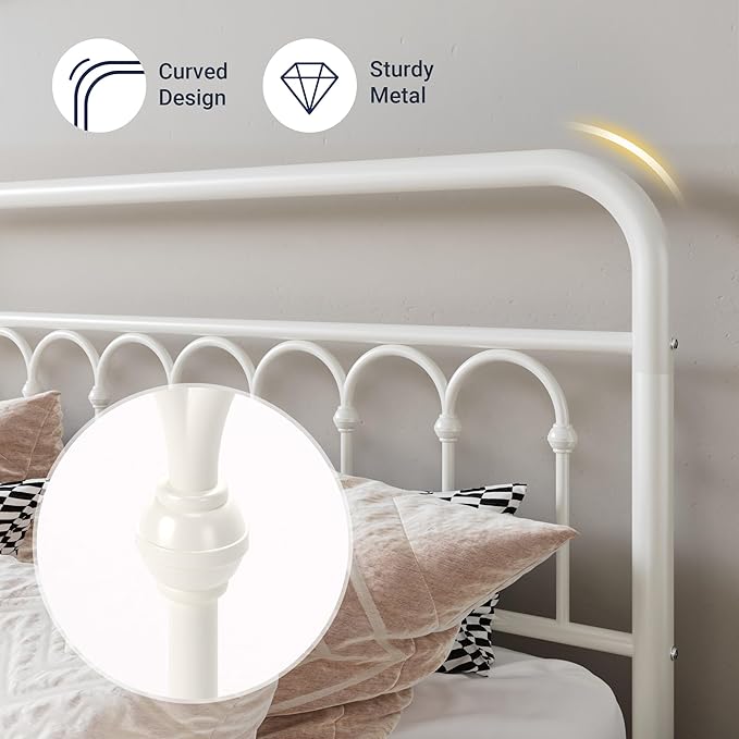 Allewie 14 Inches Queen Size Metal Platform Bed Frame with Victorian Style Curved Iron-Art Headboard/Footboard, Metal Slats Support, Easy Assembly, Under Bed Storage, No Box Spring Required, White