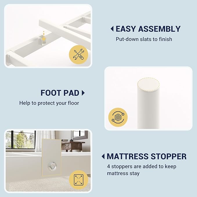 - Built to Last: Engineered for exceptional strength, this bed's heavy-duty steel frame and reinforced slats provide unwavering support. The slats are positively locked in place, complemented by 4 integrated mattress stoppers that prevent any shifting, ensuring ultimate safety and peace of mind
