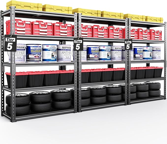 - 【Safer & Stronger Rolled Edge Design】Built tougher and safer! Forget flimsy, sharp-edged posts. Our shelving features a premium rolled-edge design on the metal columns. This not only makes the columns thicker and more durable but also protects your hands from cuts and scratches. It's the smarter, safer choice for garage shelves or shelves for garage storage.