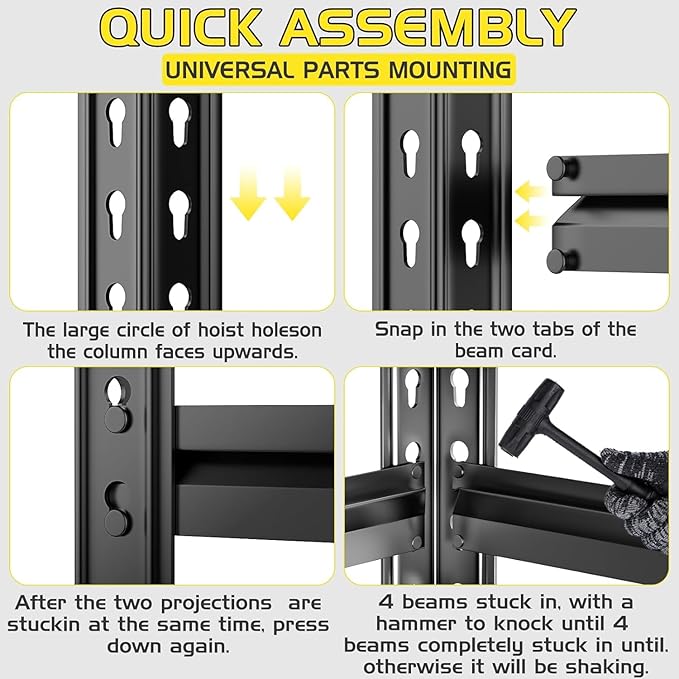 - 【Safer & Stronger Rolled Edge Design】Built tougher and safer! Forget flimsy, sharp-edged posts. Our shelving features a premium rolled-edge design on the metal columns. This not only makes the columns thicker and more durable but also protects your hands from cuts and scratches. It's the smarter, safer choice for garage shelves or shelves for garage storage.