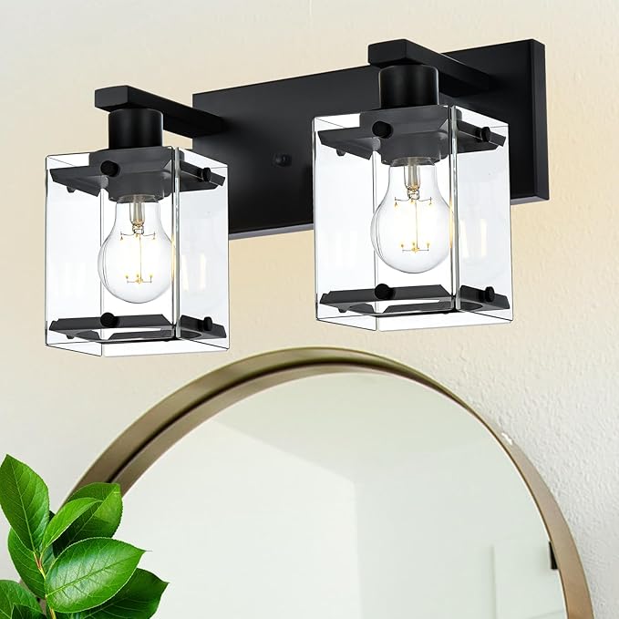 - 1 - [OUTSTANDING DESIGN] - This vanity lighting fixture is designed with sturdy metal base in matte black finish, matching with rectangular clear glass lampshade, providing you clear light instead of a harsh glare