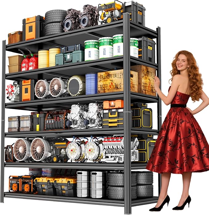 - 【3500LBS Metal Storage shelves】This metal garage shelving is made of high-quality thickened cold-rolled steel, with a hardness increase of 30% compared to ordinary steel. The double-layer column design greatly improves the stability and load-bearing capacity of the storage shelves, with a comprehensive load-bearing capacity of up to 3500LBS and a load-bearing capacity of 700LBS per layer