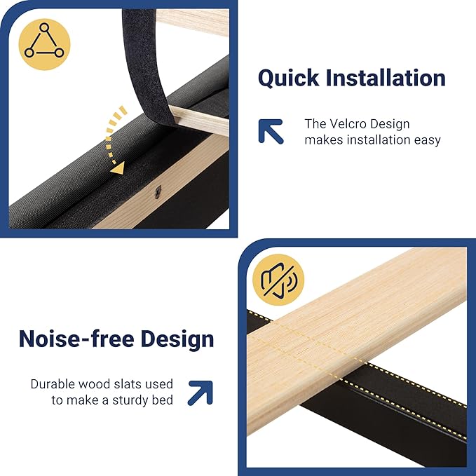 - Elegant Upholstered Design: Wrapped in premium velvet fabric with vertical tufted design, this platform bed frame adds comfort and sophistication. The padded headboard provides excellent back support for reading or watching TV