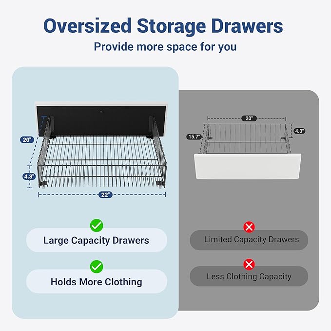 - Sturdy & Durable Construction: Built with a heavy-duty metal frame and reinforced wooden slats, this queen size bed frame with storage ensures strong mattress support and durability—no box spring required