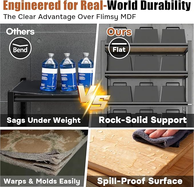 - β 10-MINUTE ASSEMBLY, ZERO FRUSTRATION β No tools, no bolts, no headaches. Thanks to our brilliant interlocking system, you can assemble this entire storage rack by hand in 10 minutes or less. We designed it for real life, so you'll spend more time organizing your space and less time reading confusing instructions. Get your garage, workshop, or basement organized the moment it arrives.