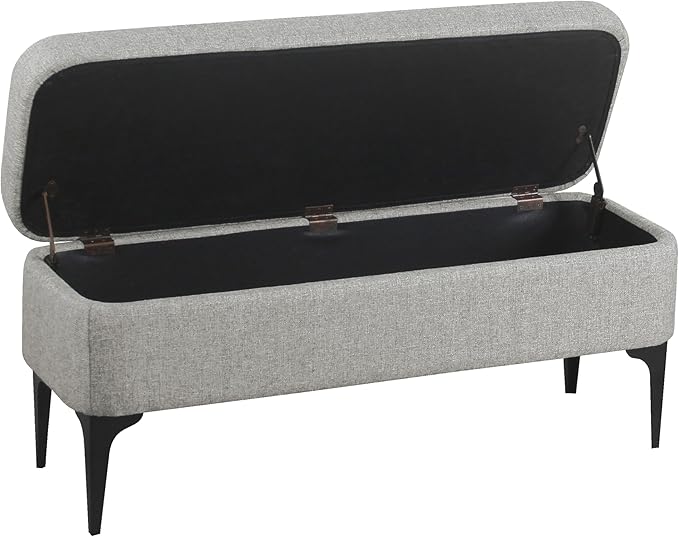 HomePop Upholstered Storage Bench with Metal Leg Home Décor|Bench with Storage for Living Room & Entryway - Sustainable Gray Woven