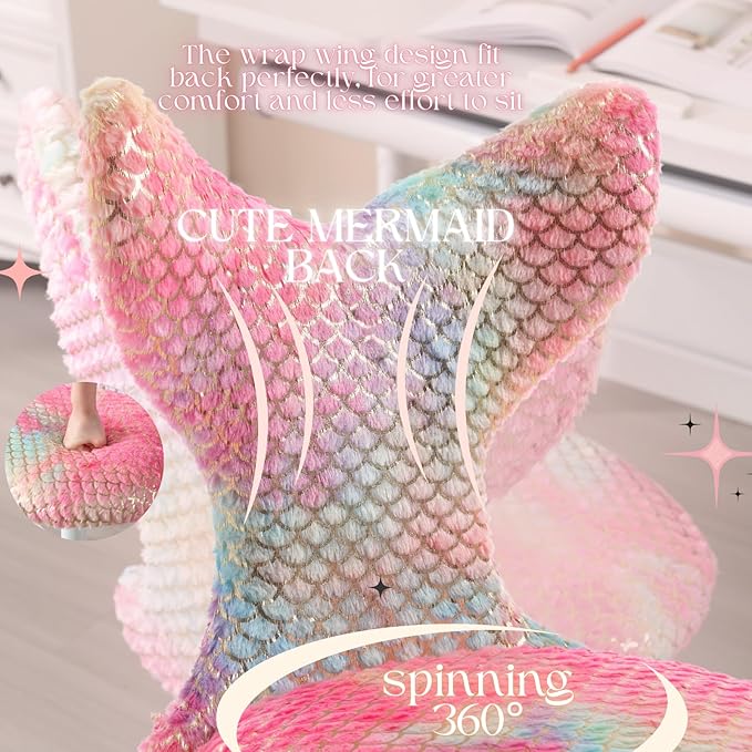 - PLAYFUL & COLORFUL DESIGN – Featuring a whimsical mermaid-shaped backrest and vibrant fluffy faux fur upholstery, this chair adds a splash of fun and style to any child’s bedroom or study space