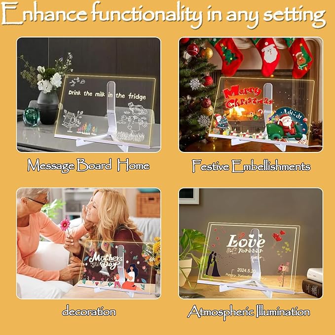 - 【Ideal Holiday Gift】Acrylic Dry Erase Board with Light Acrylic board is easy to write and erase, and cleaning is simple, just wipe it with a damp cloth. It's a perfect gift for your kids, friends or family on Christmas, birthdays, Thanksgiving and other holidays.