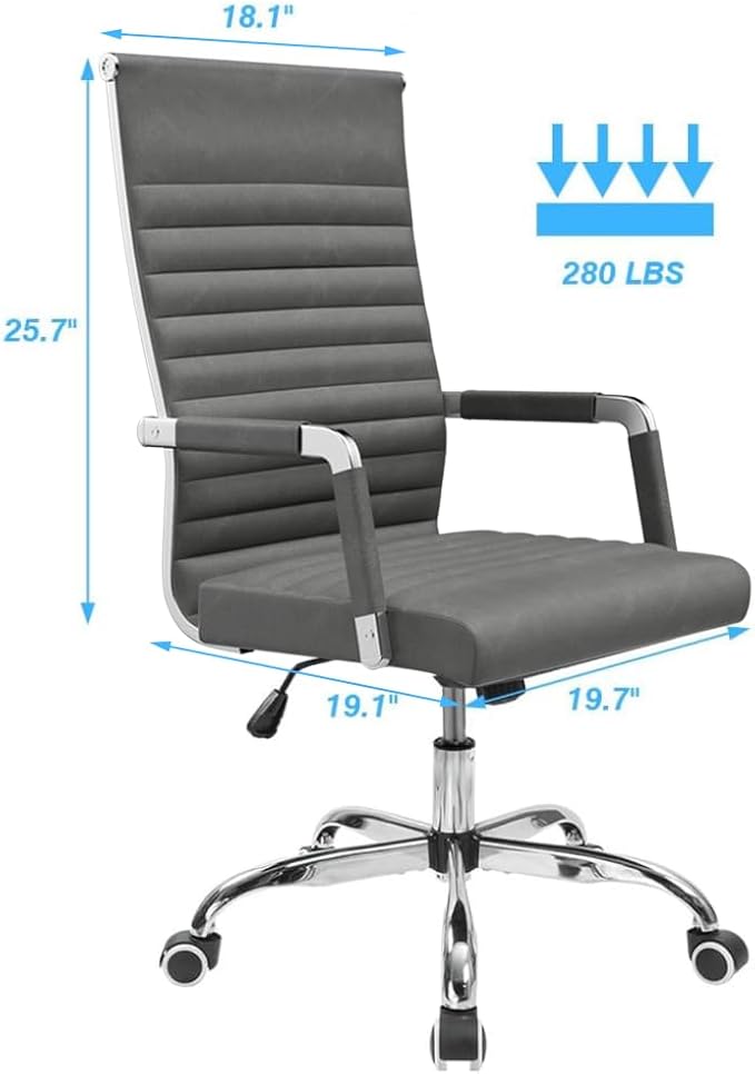Furmax Ribbed Office Desk Chair Mid-Back PU Leather Executive Conference Task Chair Adjustable Swivel Chair with Arms (Bicolor Vintage Grey)