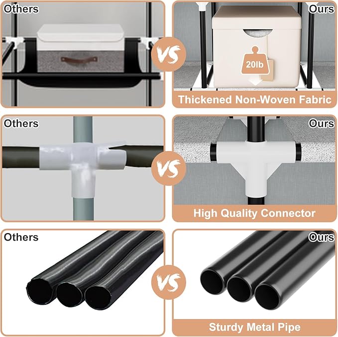 - Easy to Assemble: This closet racks for hanging clothes has a simple structure and corner closet is equipped with a detailed installation instruction manual, just follow the steps of the instruction manual to assemble, and it can be done easily