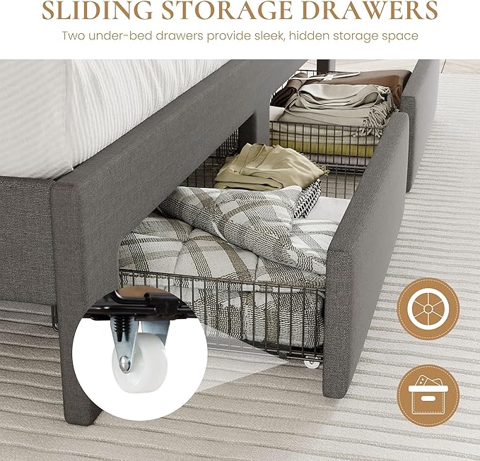 - Ample Storage Capacity: Features 2 oversized footboard drawers, 2-tier wide headboard shelves and wingback storage pockets, this full storage bed frame gives you versatile storage for bulky items like quilts and bags as well as small essentials like phones and glasses—perfect for solving bedroom clutter