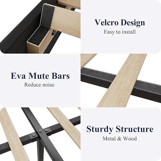 - Durable Construction: The quality wood slats and metal frame structure form a cross structure, which enhances the stability of this bed frame
