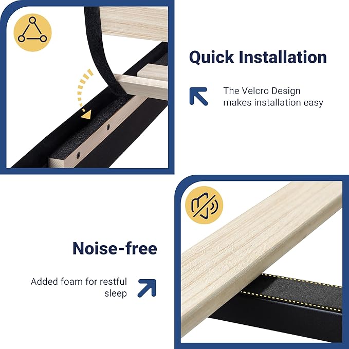 - Silent Sleep Experience: This bed frame has built-in silent cotton strips that fit snugly at the bed board joints, ensuring seamless, squeak-free installation, giving you a comfortable and quiet sleeping experience.