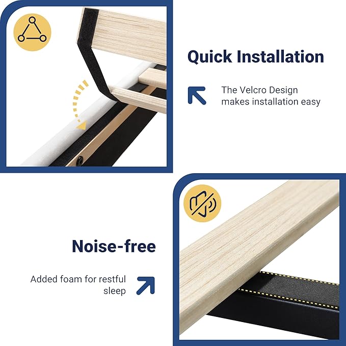 - Silent Sleep Experience: This bed frame has built-in silent cotton strips that fit snugly at the bed board joints, ensuring seamless, squeak-free installation, giving you a comfortable and quiet sleeping experience.