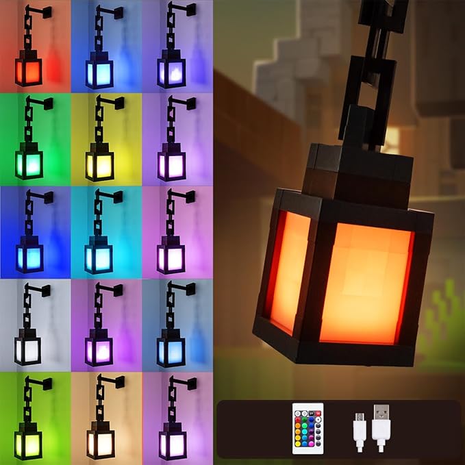 Pixelated Lantern Night Light - Rechargeable 16-Color LED Mood Light w/Remote & Touch Control, Portable Wall/Table Lamp for Bedroom Decor, Kids Room, Camping & Gifts