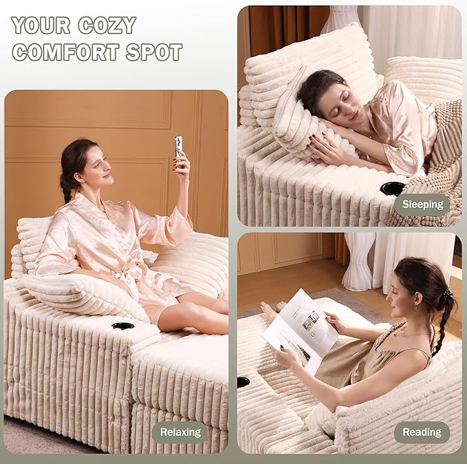 - STORAGE OTTOMAN & ARMREST: This chaise lounge features a spacious storage ottoman (39.4 in D x 23.6 in W x 6.3 in H) and two storage armrests (19.7 in D x 5.9 in W x 5.3 in H), perfect for stashing blankets, books, or remote controls. Plus, dual cup holders on the armrests keep your drinks within easy reach, adding convenience to your relaxation time.
