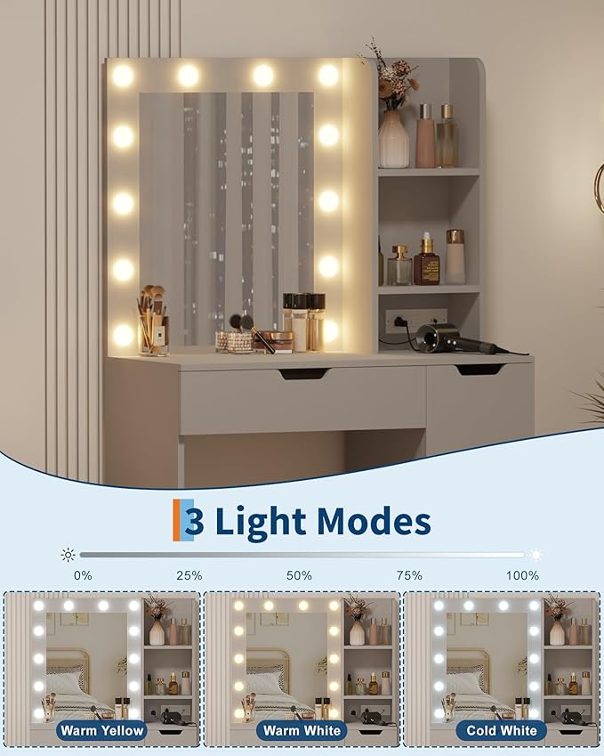 - STURDY, SAFE & FAMILY-FRIENDLY DESIGN: Engineered for stability with a robust frame and anti-tip secured vanity mirror with lights desk. Peace of mind for households with kids or pets. Enjoy worry-free glam sessions every day.