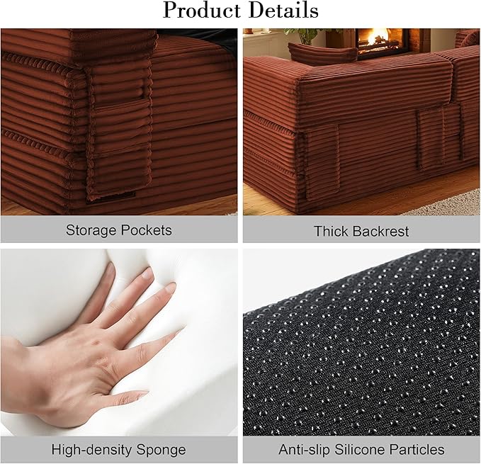 - 【Ultra-Comfortable Seating & Rest】Indulge in premium relaxation on our sofa bed. The sleek corduroy cover and supportive high-density foam work together to provide incredible comfort and alleviate pressure. Complete with 3 cozy pillows for the ultimate comfortable experience.