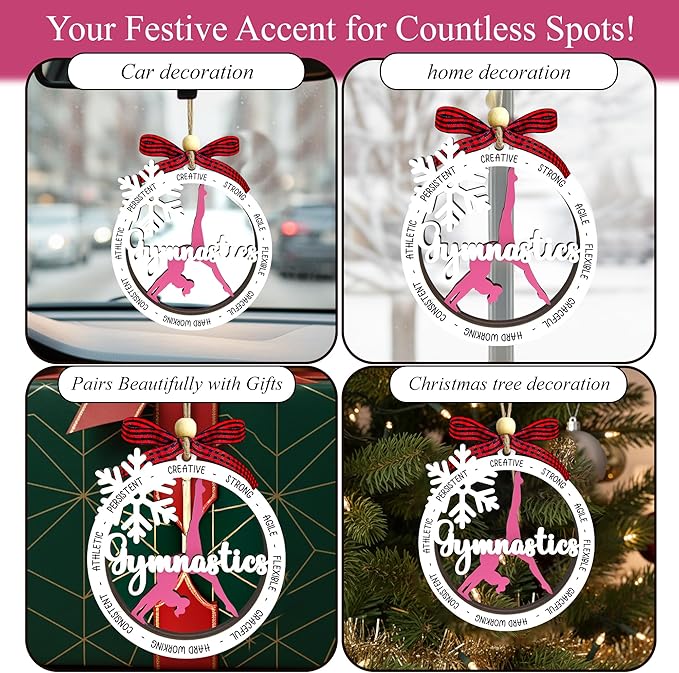 - Versatile Decoration: Crafted with elegance and durability, this gymnastics ornament can be displayed on Christmas trees, bedroom walls, car mirrors, office desks, or gym bags. Its artistic design makes it more than just décor—it’s a motivational keepsake to inspire athletes and fans year-round
