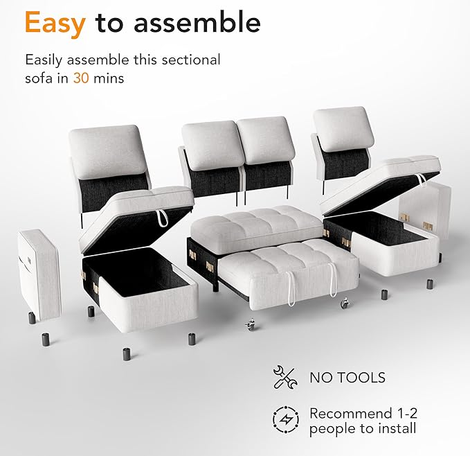 - Tool-Free Assembly: This sectional sleeper sofa bed is easy to assemble with clear instructions and no tools needed. The components snap together effortlessly, allowing you to enjoy your new furniture without the stress of complicated assembly.