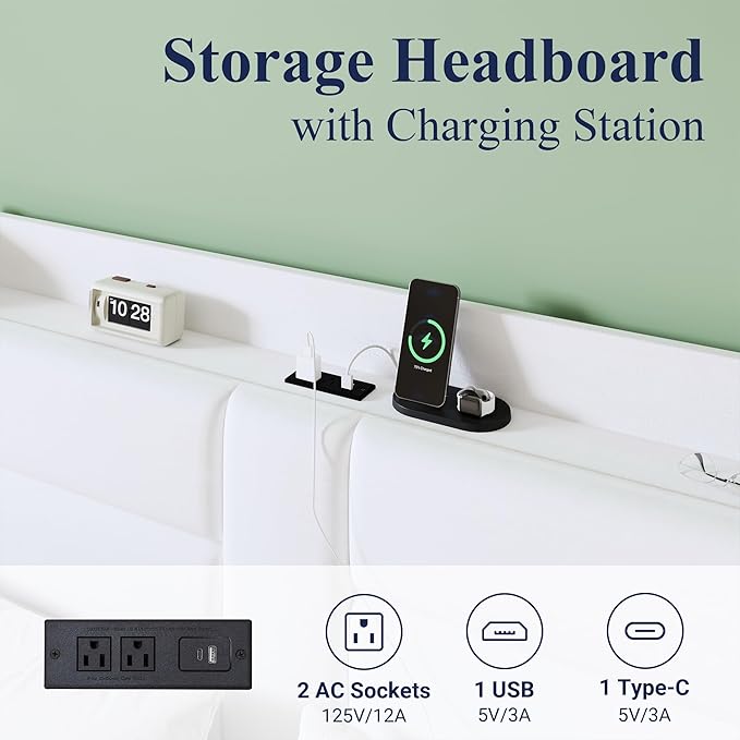 - Special Feature : Charging Station, No Box Spring Needed, Squeak Resistant, Storage Headboard