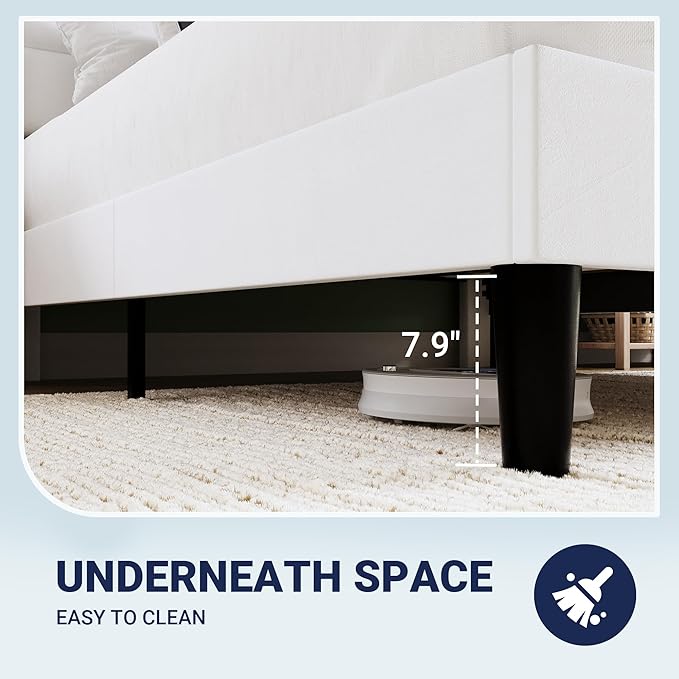 - 【Storage Headboard】Extra and handy headboard storage space- The headboard of this king size bed frame has an open shelf, providing easy access to your phone, alarm clock, glasses, or any other nighttime essentials