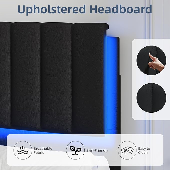 - Built-in LED Light Bed Frame: This full size bed frame with led lights is equipped with various lighting effects and brightness levels, combining practicality and uniqueness. You can easily improve the bedroom atmosphere according to your needs, making your home life more colorful