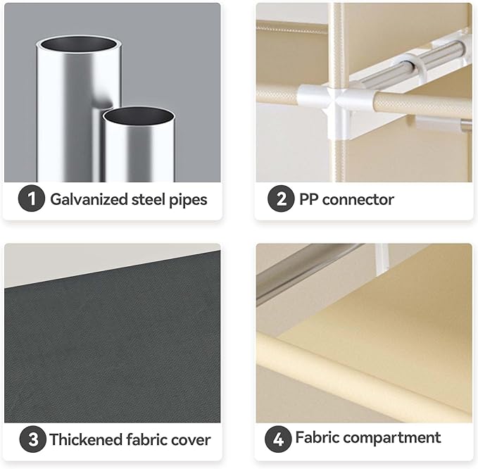 - 【Important Assembly Tips】: Please take a moment to watch the assembly video linked here. It’s crucial to follow the correct assembly sequence and ensure all connectors are securely pressed into place. This prevents fabric tearing and guarantees a stable, wobble-free wardrobe.