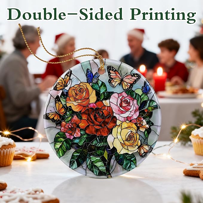 Butterfly & Rose Ornament | Christmas Ornaments, Christmas Decorations, Hanging Ornaments for Tree, Holiday Decor Gifts | Gifts for Flower Lover, Women, Friend, Neighbor | Gift Exchange Ideas