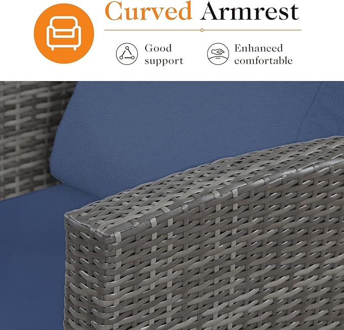 • Patio Furnitu【Stylish and Versatile】Our patio furniture seamlessly fit into other outdoor furniture sets or modular sectionals. The timeless wicker design complements any outdoor area, from backyards to front porches and poolside lounges.re Set