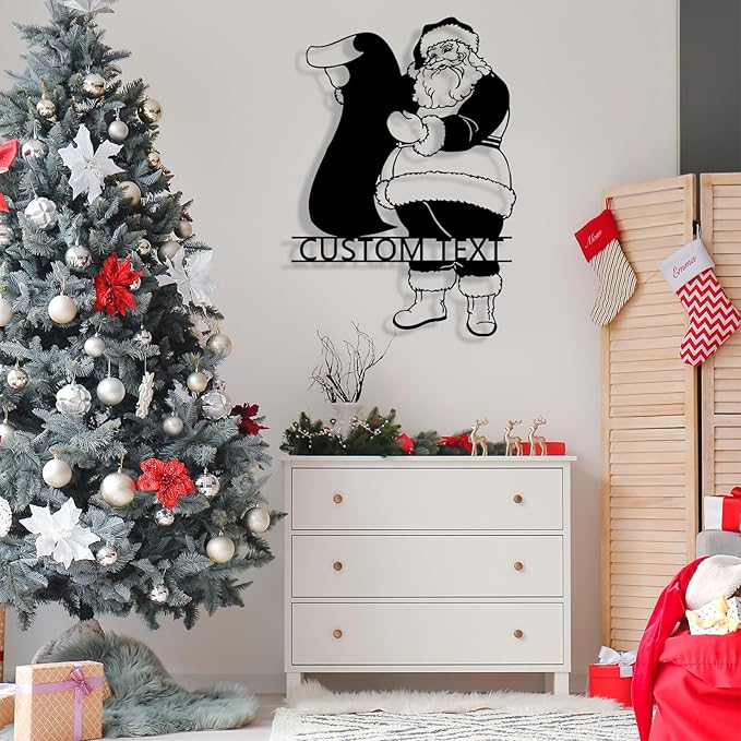 Personalized Christmas Santa Claus Metal Sign, Custom Name Santa Claus Metal Sign Wall Decor, Merry Christmas Holiday Wall Decoration for Home Living Room, Bedroom, Office, Garden, Porch