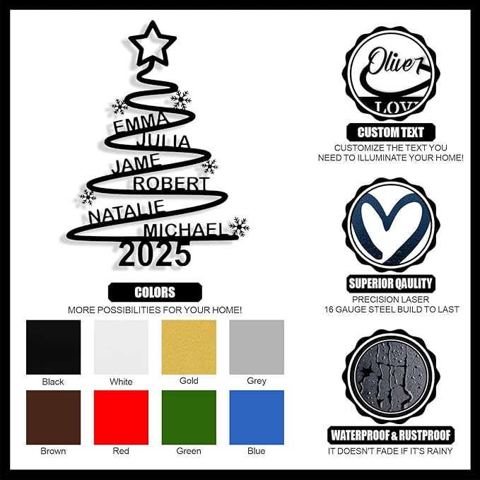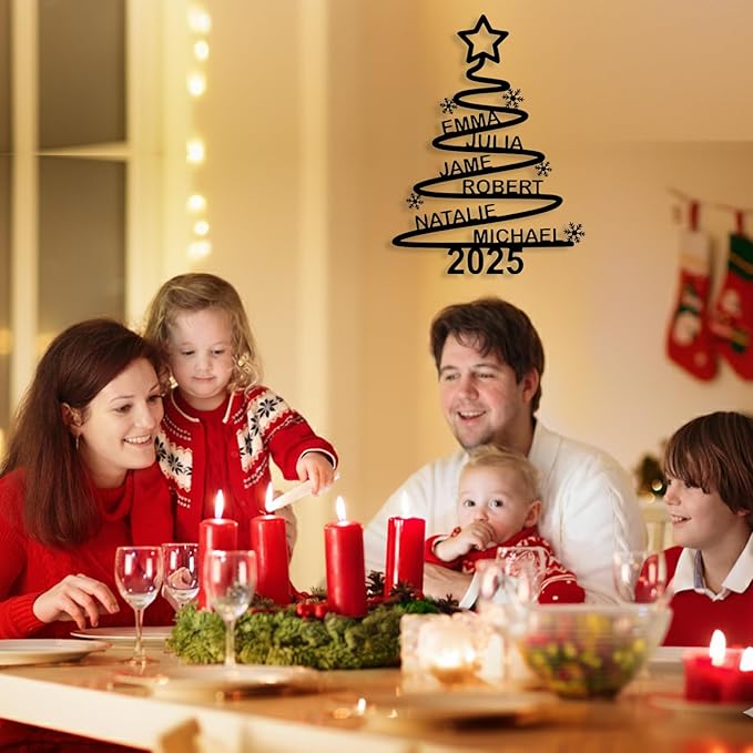 - Personalized Christmas Tree Metal Sign - Click "CUSTOMIZE NOW" and enter the last name, text, established date on the custom metal sign. Adds a Christmas holiday atmosphere to your home door, living room, portch wall decor.