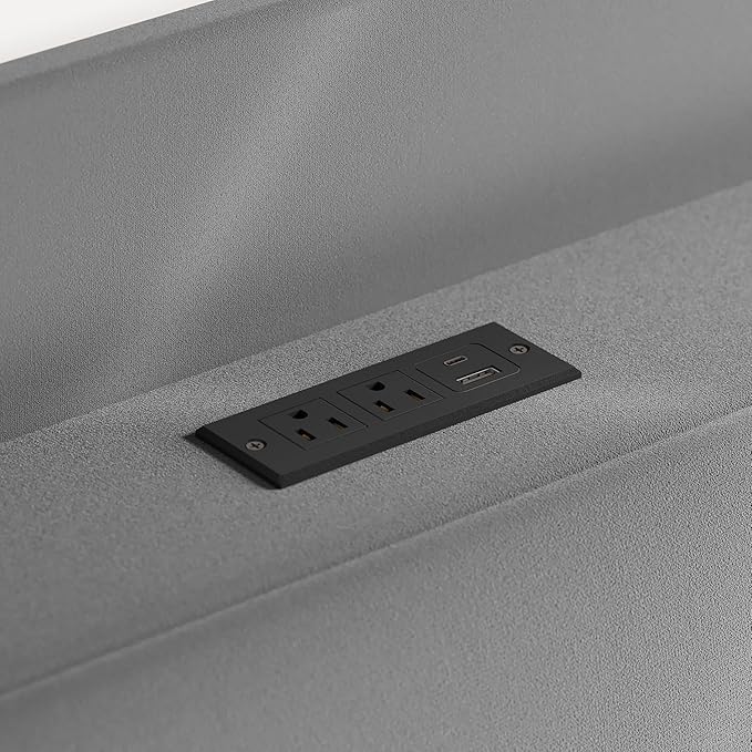 - Built-in Charging Station: Never leave comfort to charge. Our integrated station features 2 AC outlets, 1 USB port and 1 Type-C port—keeping all your devices powered right from this queen bed. It’s the elegant end to outlet hunting and dead battery anxiety, designed for a life where everything is within reach