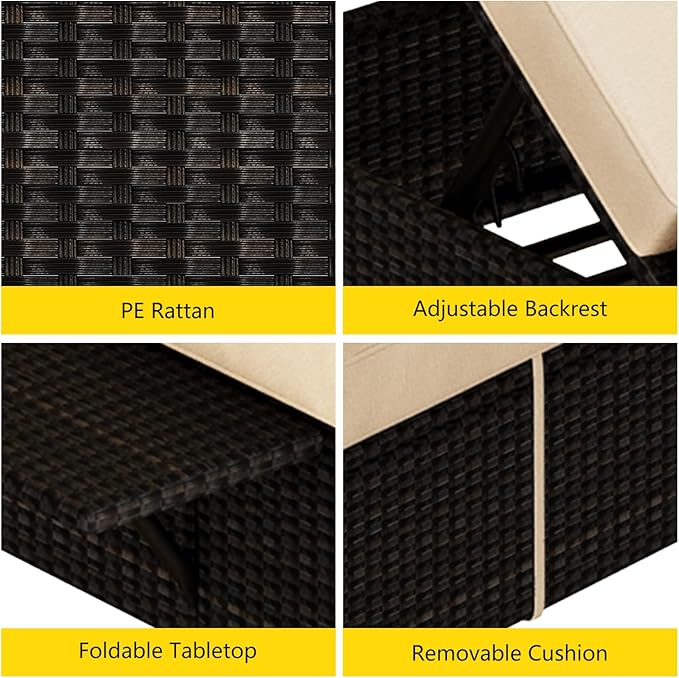 - Quality Material: The patio lounge chairs are constructed from rust-resistant steel frame and all-weather PE rattan, which is stable enough to withstand the elements, making it sturdy for long-lasting outdoor use